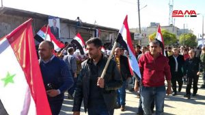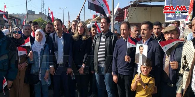 وأعرب المشاركون في الوقفة عن دعمهم المطلق لوحدة الأراضي السورية والوقوف بحزم ضد كل محاولات المس بسيادة الأراضي السورية مطالبين بخروج المحتل التركي والتصدي لأطماعه العدوانية باحتلال المزيد من الأراضي وتهجير سكانها.