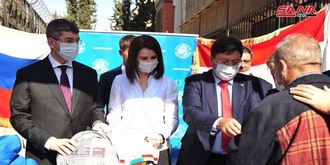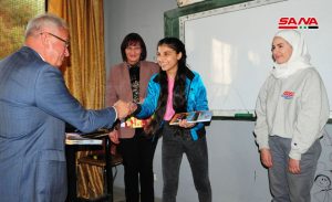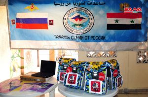 وفي سياق متصل قدم وفد روسي اليوم كتباً تعليمية باللغة الروسية وحواسب محمولة وحقائب مدرسية مع قرطاسية إلى عدد من طالبات ثانوية “نبيل يونس” بمنطقة ركن الدين وعدد من طلاب مدرسة “فريز مالك” بمنطقة القصور بدمشق.