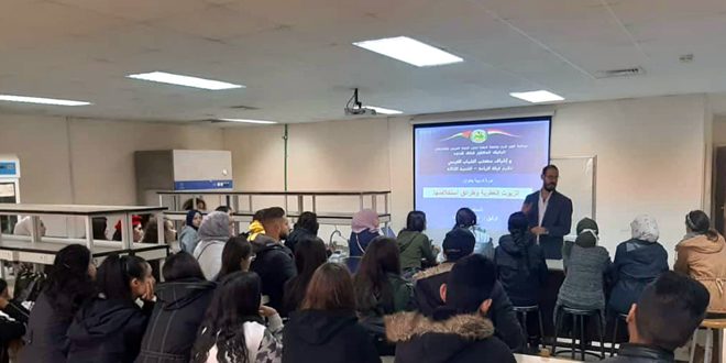 بهدف تدريب الطلبة على إنشاء مشاريع صغيرة تؤمن مورد دخل لهم ومساعدتهم على دخول سوق العمل احتضنت كلية الزراعة في جامعة البعث أيام تدريبية حول استخلاص الزيوت العطرية بمشاركة 42 طالباً وطالبة من كليتي الهندسة الزراعية والكيميائية.