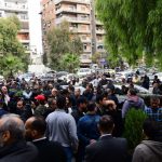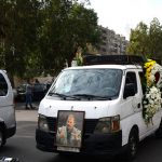 وتوجه موكب التشييع بعد ذلك بالسيارات إلى مقر نقابة الفنانين بدمشق توقف عندها بضع دقائق للمرة الأخيرة حيث كان الراحل رئيساً للنقابة لدورتين متتاليتين منذ عام 2014 ولغاية رحيله كما كان عضواً في مجلسها المركزي للعديد من الدورات.