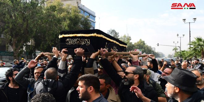 شُيع اليوم جثمان نقيب الفنانين الراحل زهير رمضان من أمام مشفى الرازي بدمشق وسط حضور شخصيات رسمية وفنية وعدد من محبي الراحل.