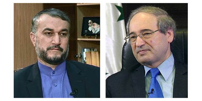 أجرى وزير الخارجية والمغتربين الدكتور فيصل المقداد اليوم اتصالاً هاتفياً مع وزير الخارجية الإيراني حسين أمير عبد اللهيان تناول خلاله العلاقات الثنائية بين البلدين وسبل تطويرها.
