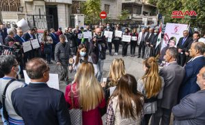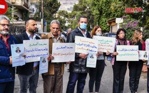 عدد من الإعلاميين أكدوا خلال مشاركتهم بالوقفة أنهم بتضامنهم مع زميلهم يتضامنون مع أنفسهم فأي صحفي سوري يدافع عن بلده ويفضح جرائم الإرهاب وداعميه معرض للخطر داعين الجهات العربية والدولية إلى التضامن مع محمد الصغير الذي تعرض للخطف لأنه يقوم بواجبه الوطني ورفع المزيد من الأصوات المطالبة بالإفراج عنه.