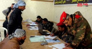تمت اليوم تسوية أوضاع المئات من أبناء محافظة دير الزور في إطار عملية التسوية الشاملة الخاصة بأبناء المحافظة وتشمل المدنيين المطلوبين والعسكريين والفارين والمتخلفين عن الخدمتين الإلزامية والاحتياطية.