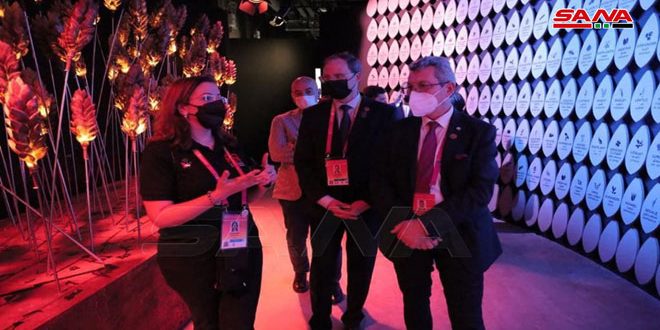 زار وفد روسي برئاسة المفوض العام لجناح روسيا نائب وزير الصناعة والتجارة ألكسي غوزديف الجناح السوري في معرض إكسبو 2020 دبي وجال في أقسامه.