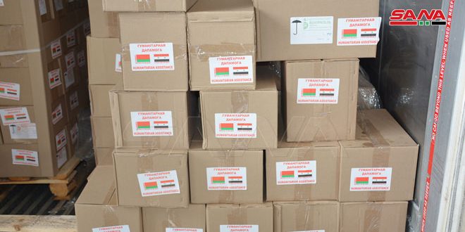 تسلمت سورية اليوم شحنة مساعدات إنسانية مقدمة من جمهورية بيلاروس تضم مستحضرات طبية ومحولات كهربائية ومواد غذائية سيتم توزيعها وفق خطة اللجنة الفرعية للإغاثة باللاذقية ووزارة الصحة.