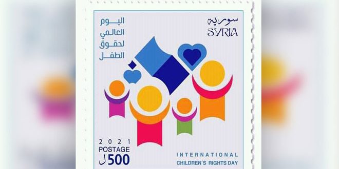 أصدرت المؤسسة السورية للبريد طابعا بريديا تذكاريا بمناسبة اليوم العالمي لحقوق الطفل.