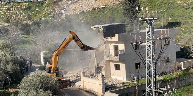 ولفت التقرير إلى أن قوات الاحتلال تواصل عمليات هدم منازل الفلسطينيين بالضفة الغربية كجزء من سياسة الاستيطان حيث هدمت منزلا في حي رأس العامود بالقدس ومنشأة تجارية في بلدة الرام شمالها ومنزلين وخمس منشآت زراعية في بلدة الزعيم شرقها كما هدمت منشأة زراعية في بلدة بيت أمر في الخليل فيما سلمت إخطارات بهدم عدة منازل ومنشآت في بلدات العيسوية بالقدس والمغير في رام الله والخضر في بيت لحم وخربة حمصة الفوقا في الأغوار الشمالية.
