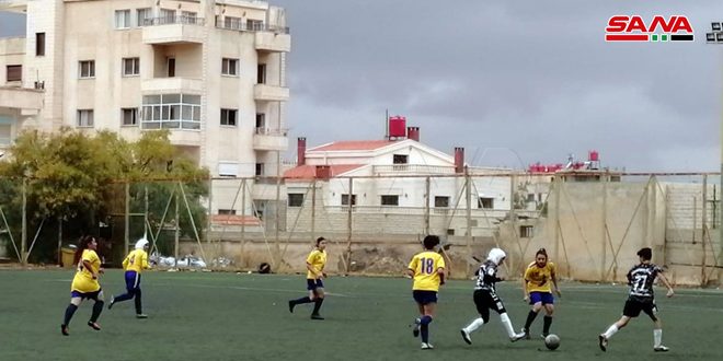 بمدينة المزرعة الرياضية بالسويداء في الجولة الرابعة من دوري كرة القدم للسيدات.