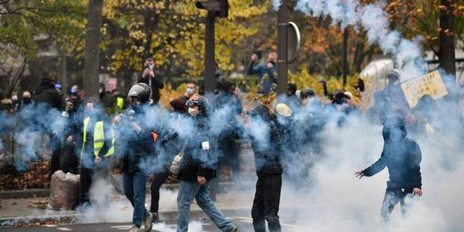 استخدمت الشرطة الفرنسية الغاز المسيل للدموع والهراوات اليوم لقمع احتجاجات واسعة في العاصمة باريس بمناسبة الذكرى السنوية الثالثة لتأسيس حركة السترات الصفراء ما أدى إلى إصابة اثنين.
