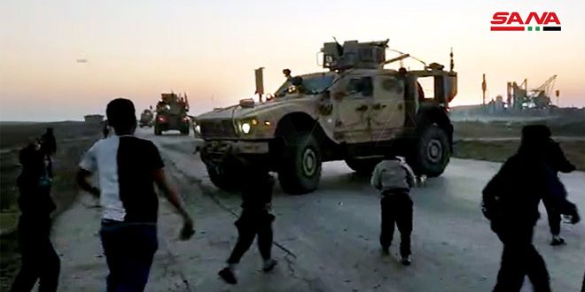 ونقلت مصادر محلية لمراسلة سانا أن رتلاً مؤلفاً من ثلاث مدرعات تابعة لقوات الاحتلال الأمريكي ترافقها سيارة تابعة لميليشيا “قسد” حاولت عبور الطريق الدولي والمرور قرب القرية بتمام الساعة السادسة من صباح اليوم فقام الاهالي باعتراض الرتل ورشقه بالحجارة وطردوه من المنطقة.