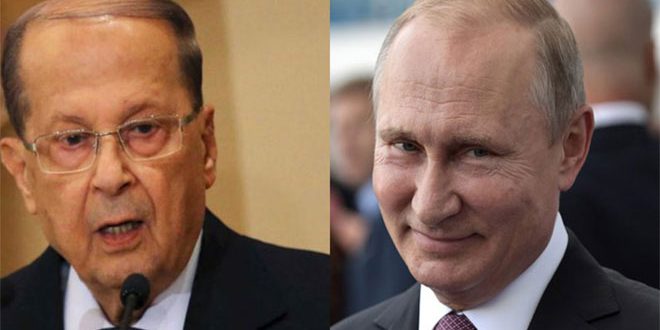 وجاء في برقية تهنئة بعث بها بوتين الى الرئيس اللبناني ميشال عون لمناسبة العيد الـ 78 لاستقلال لبنان: بجهودنا المشتركة نضمن مواصلة تطوير علاقات الصداقة بين روسيا ولبنان لما فيه مصلحة شعبينا ومن أجل تعزيز الأمن والاستقرار في منطقة الشرق الأوسط.