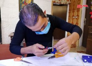 بعزيمته وإصراره على العمل تحدى جريح الحرب حازم نصر إصابته لينطلق إلى الحياة مجدداً بمشروع متناهي الصغر لتصنيع الإكسسوارات من مادة (الريزن ايبوكسي) أطلقه خلال العام الحالي من منزله بمدينة السويداء.