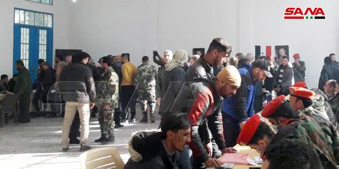 تمت اليوم تسوية أوضاع المئات في مركز مدينة الميادين بريف دير الزور الجنوبي الشرقي الذي فتحته الجهات المعنية في إطار استمرار التسوية الشاملة الخاصة بأبناء المحافظة والتي انطلقت في الرابع عشر من الشهر الجاري وتشمل المدنيين المطلوبين والعسكريين الفارين والمتخلفين عن الخدمتين الإلزامية والاحتياطية.