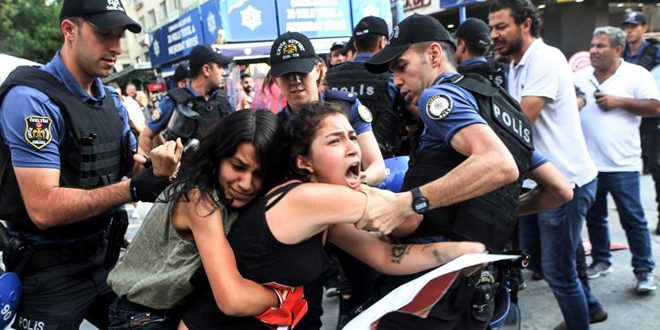 قمعت الشرطة التركية مظاهرة خرجت في اسطنبول احتجاجاً على العنف الذي يمارسه النظام التركي بحق المرأة.