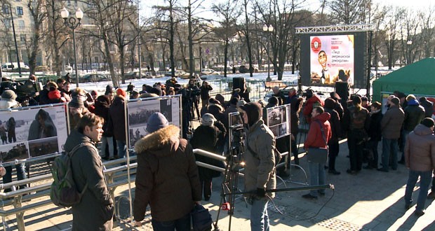 وأقيم المعرض في إطار مبادرة لمجموعة من المواطنين الروس وحركة /انتي ميدان/ الاجتماعية حيث يرى المنظمون أن اللحظة التاريخية حانت لإظهار ما يجري في سورية وأوكرانيا على وجه الخصوص حيث لا تخفي إدارة الرئيس الامريكي باراك اوباما أعمالها ونواياها العدوانية ضد شعبي هذين البلدين.
