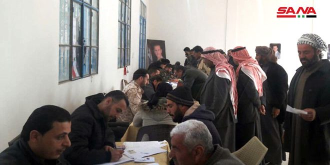 تواصلت اليوم في مدينة الميادين عملية التسوية الشاملة الخاصة بأبناء محافظة دير الزور والتي تشمل المدنيين المطلوبين والعسكريين الفارين والمتخلفين عن الخدمتين الإلزامية والاحتياطية وذلك في إطار الجهود المبذولة لإتاحة الفرصة أمام كل من لم تتلطخ يداه بالدماء للعودة إلى حضن الوطن.