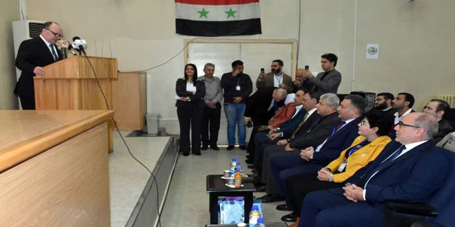 وزير التعليم العالي والبحث العلمي الدكتور بسام إبراهيم أشار في كلمة له إلى أن البحوث والدراسات المشاركة بالمؤتمر تشكل رافعة للنهوض بالقطاعات التنموية الاقتصادية مشددا على ضرورة التنسيق بين الجهات العلمية البحثية والوزارات والمؤسسات لممارسة دور تشاركي بحل مشكلات الزراعة والبيئة ورسم سياسات التنمية .