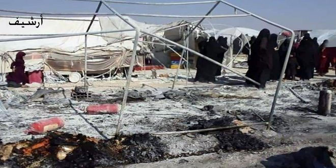 وقالت مصادر أهلية لمراسل سانا إن حريقاً نشب في القسم الخامس ضمن مخيم الهول بريف الحسكة الشرقي وأتى على ثلاث خيم داخل المخيم وأدى لإصابة عدد من الوافدين بحروق طفيفة لافتاً إلى أن الحريق اندلع جراء احتراق مدفئة تعمل على مادة الكاز المكرر بشكل بدائي.