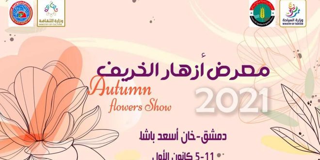 تنطلق يوم الأحد القادم فعاليات معرض أزهار الخريف الأول الذي تقيمه مديرية سياحة دمشق بالتعاون مع وزارة الزراعة والإصلاح الزراعي وغرفة زراعة دمشق ويستمر حتى الـ 11 من كانون الأول في خان أسعد باشا.