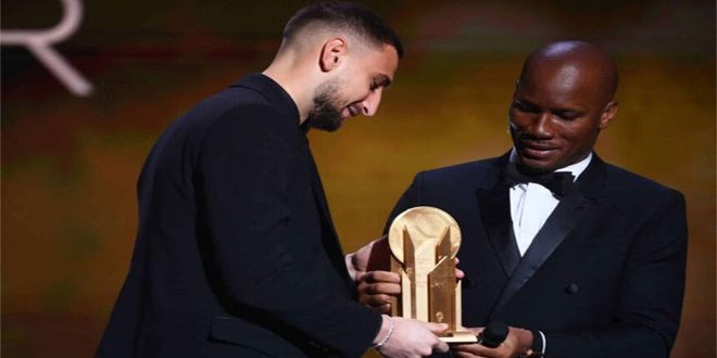 توج الإيطالي جياناويجي دونارومان حارس مرمى باريس سان جيرمان بجائزة ” ليف ياشين” لأفضل حارس في العالم والمقدمة ضمن حفل جوائز الكرة الذهبية.