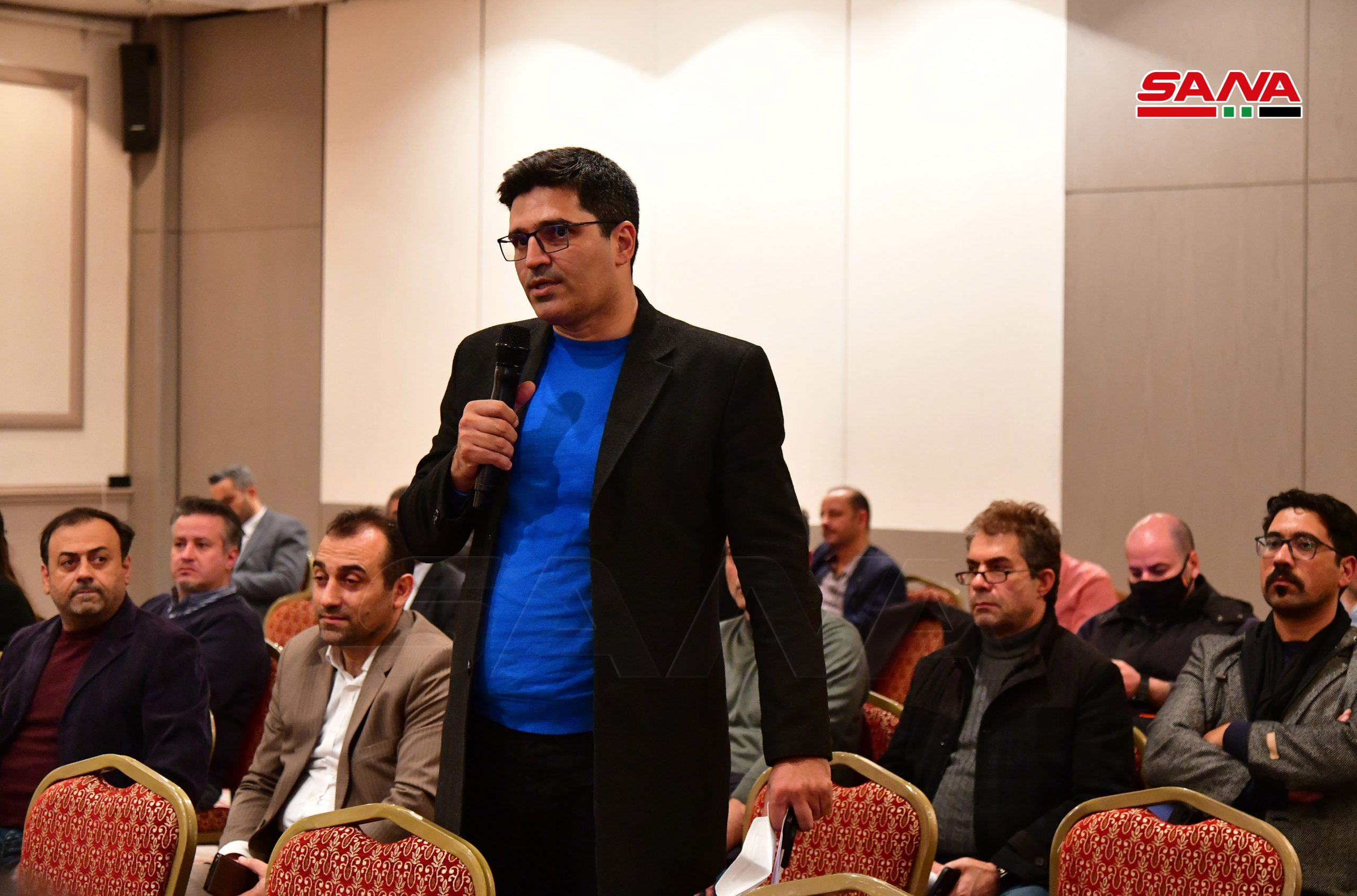 وتركزت مداخلات الحضور على ضرورة التعريف بقانون الاستثمار الجديد في الوسط التجاري والاقتصادي الإيراني وتطوير التعاون بين شركات القطاع الخاص في كلا البلدين ودعوة الجهات الإيرانية للاستثمار في مجالات الزراعة والصناعة والسياحة والطاقات المتجددة والاستفادة من التقنيات الإيرانية الحديثة في هذا المجال وإنشاء منظومة الكترونية في غرفة التجارة السورية الإيرانية المشتركة توضع فيها الاحتياجات والقدرات الموجودة في البلدين.