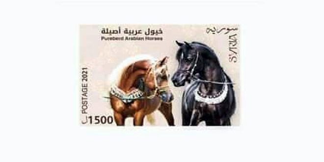 أصدرت المؤسسة السورية للبريد بطاقة ومجموعة طوابع بريدية تذكارية تمثل مجموعة من الخيول العربية.