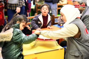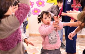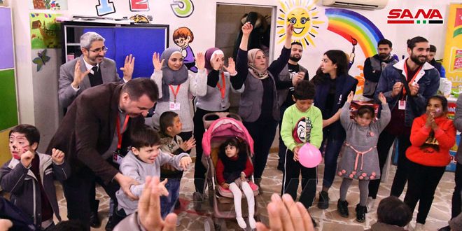 فقرات فنية ورياضية ومسابقات متنوعة شارك بها أطفال من ذوي الإعاقة ضمن فعالية أقامتها جمعية رعاية الأطفال المصابين بالشلل الدماغي اليوم بمقرها في دمشق.