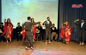 تماهى التراث الشعبي بصوره المختلفة مع الرقص والغناء الفلكلوريين من خلال الحفل الذي استضافته خشبة مسرح المركز الثقافي العربي بطرطوس لفرقة آشتي للتراث الكوردي ضمن فعالية أيام الثقافة السورية.