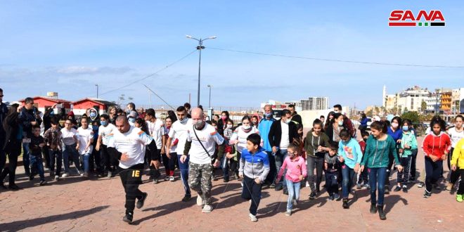 بمناسبة اليوم العالمي للإعاقة نظمت مؤسسة الأولمبياد الخاص بطرطوس بالتعاون مع فرع الاتحاد الرياضي والمجلس الفرعي للإعاقة بالمحافظة ماراثوناً رياضياً على الكورنيش البحري للأطفال من ذوي الإعاقة وعدد من الأطفال الأصحاء.