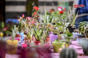 من جهته يشارك أفرون الأيوبي بعرض منتجاته من النباتات والصباريات التي زرعها بنفسه باستخدام البذور إضافة إلى عرض مجموعة من النباتات الغربية التي تصلح للزراعة في سورية للتعريف بها والإسهام بنشرها.
