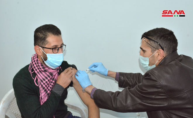 بدوره أشار الدكتور برهان كنوزي نائب مدير مشفى جامعة البعث إلى أن حملة التلقيح تستمر لمدة أربعة أيام لجميع العاملين بالجامعة ولذويهم أيضا الراغبين بأخذ اللقاح.