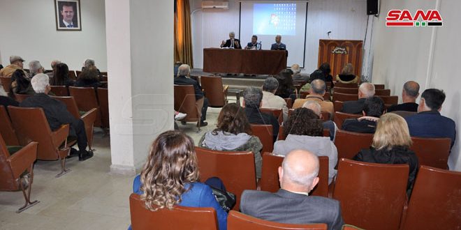 رئيس فرع اتحاد الكتاب العرب الدكتور محمد بصل أشار إلى دور المفكرين والأدباء وعلماء الآثار بالتعريف بأول أهداف الحرب على سورية المتمثل بطمس حضارتها التي تشكل مركز الحضارات على وجه الأرض ليسهل على الكيان الصهيوني إعلان دولته العنصرية في هذه المنطقة.