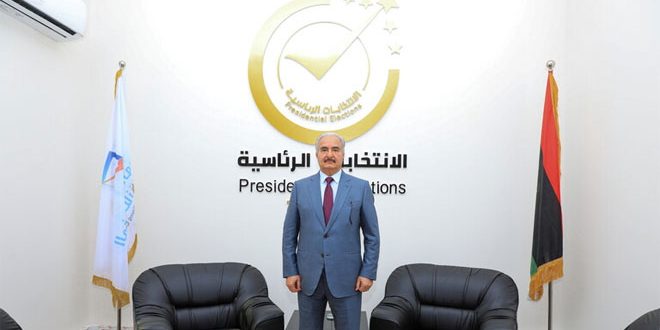 وأعلن قائد الجيش الليبي السابق خليفة حفتر الشهر الماضي تقديم أوراق ترشحه للانتخابات الرئاسية في ليبيا إلى المفوضية العليا للانتخابات بمقرها في مدينة بنغازي إلا أن محكمة الزاوية أصدرت حكما باستبعاده بعدما قبلت الطعن المقدم ضده.