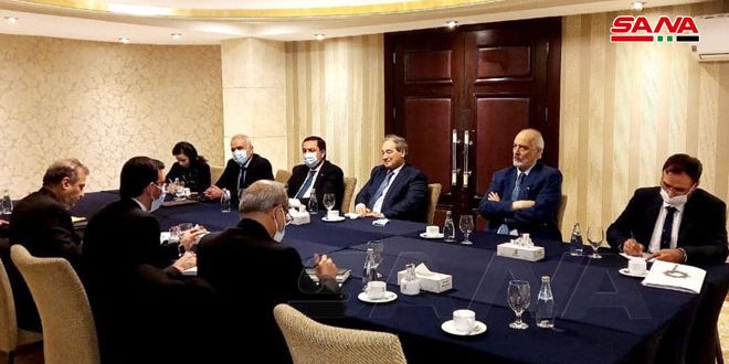 بحث وزير الخارجية والمغتربين الدكتور فيصل المقداد في طهران اليوم مع كبير مساعدي وزير الخارجية الإيراني للشؤون السياسية الخاصة علي أصغر خاجي الجولة القادمة من محادثات أستانا المقرر عقدها في النصف الثاني من الشهر الجاري اضافة إلى آخر التطورات المتعلقة باجتماعات لجنة مناقشة الدستور.