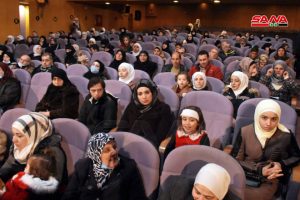بمشاركة نحو50 طفلاً وشاباً من ذوي الإعاقة أقامت جمعية الأيتام المعوقين بالتعاون مع مديرية الشؤون الاجتماعية والعمل واتحاد الجمعيات الخيرية احتفالية بمناسبة يوم المعوق العالمي بعنوان بالأمل والعمل ننهض معاً على مسرح نقابة الفنانين بحلب.
