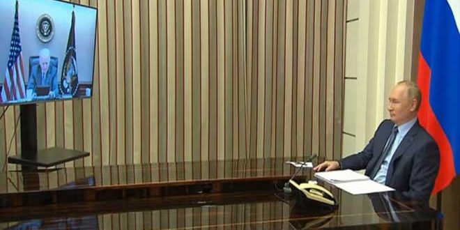 دعا الرئيس الروسي فلاديمير بوتين نظيره الأمريكي جو بايدن خلال مباحثاتهما عبر الانترنت اليوم إلى عدم تحميل روسيا مسؤولية الوضع حول أوكرانيا مطالباً حلف شمال الأطلسي “ناتو” بضمانات أمنية بعدم توسيع الحلف شرقاً.