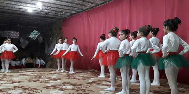 على مدى ساعة من الزمن قدمت فرقة إحساس للباليه والرقص التعبيري لوحات منوعة عكست أجواء عيد الميلاد وبعض الحالات الإنسانية ضمن مهرجان (رنوا جراس) في صالة كنيسة القديس جاورجيوس التابعة للروم الأرثوذكس بحي الحميدية في حمص.