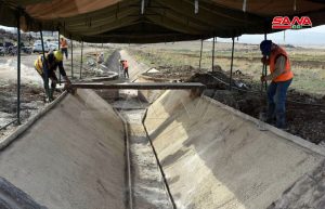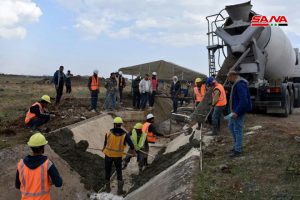 بدوره بين المهندس اسماعيل اسماعيل مدير الموارد المائية بحمص أن نسبة تنفيذ مشروع تأهيل الأجزاء المتضررة من شبكة ري الحولة نحو 50 بالمئة ويتألف المشروع من قناتي ري (أ) تروي منطقة تلدو و(ب) تروي تلدو وكفرلاها وتلذهب ويبلغ مجموع الأراضي الزراعية التي سيرويها بعد استكمال تأهيله 1236 هكتاراً متوقعاً إنجاز الأعمال بداية آذار المقبل ليتم وضعه بالخدمة.