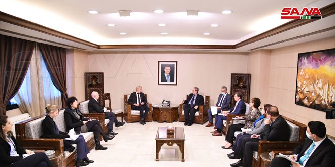وشدد الدكتور المقداد على ضرورة الالتزام بمبادئ العمل الإنساني والابتعاد عن التسييس مشيراً إلى الأوضاع الاقتصادية والمعيشية الدقيقة التي يمر بها الشعب السوري كنتيجة مباشرة للإجراءات القسرية أحادية الجانب المفروضة عليه من قبل الولايات المتحدة وبعض الدول الغربية.