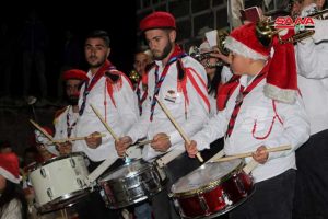 وعلى وقع أنغام فرقة مراسم خبب وأجراس الكنيسة تمت إضاءة الشجرة والمغارة وقدمت الفرقة الموسيقية عروضها وجوقة الفرح تراتيلها واستمتع الحضور بفقرة الرقص لفراشات خبب من تدريب نسرين الحاتم.