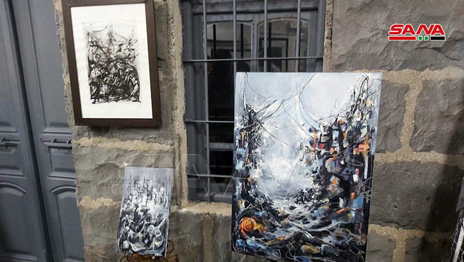 حاولت الفنانة التشكيلية نغم عدنان نصر أن تعكس في معرضها الفردي الأول صوراً لحالات إنسانية من مآسي الحرب على بلدنا.