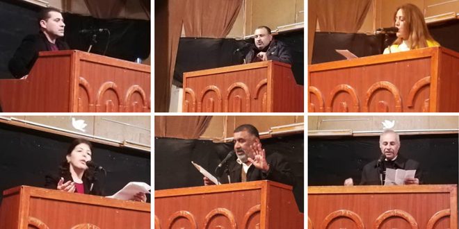 بدورها شاركت الشاعرة حنان عبد اللطيف بقصيدة حملت عنوان الملتقى “نفحات شرقية من حمص العدية” وبقصائد وجدانية تتناول الوضع العام.
