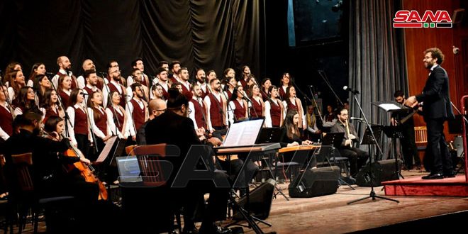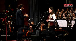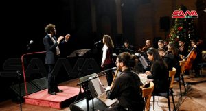 ترنيمات وأناشيد تغنت بالسلام والمحبة شدت بها من مسرح قصر الثقافة في حمص كورالات وفرق موسيقية من خلال حفل حملت عنوان “أمنيات الميلاد”.