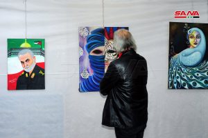 التشكيلية الشابة نغم سلامة شاركت بلوحة بورتريه للشهيد قاسم سليماني إكباراً للشهداء وبطولاتهم ضد قوى الشر ولفتت إلى أهمية مشاركة جيل الشباب مع الفنانين الكبار للاستفادة من تجاربهم وصقل تجربتها الفنية.