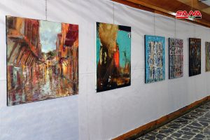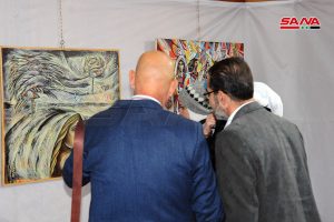 وجاء المعرض الذي اقيم بمناسبة فعالية أيام الفن التشكيلي بمبادرة من الفنانين بشير بشير ومعتز العمري الذي أوضح لـ سانا أنه شارك فيه بعملين حملا الهم الإنساني وعذاباته ومعاناة الهجرة برؤية بصرية مختلفة وتشكيلية تحكي علاقة الإنسان بالأرض والبيئة وارتباطه التاريخي والجغرافي والاجتماعي تاركاً للمتلقي حرية فهم اللوحة من خلال ما تحدثه من انطباع نفسي ومعرفي.