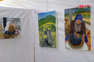 الفنان أحمد الخطيب شارك بعمل من المدرسة الانطباعية ضمن مجموعة لوحات اسمها ذاكرة ومكان مستوحياً فكرته من إحدى الحارات الشامية بصورة تعتمد الاختزال والتبسيط للون لافتاً إلى أهمية استحضار التراث بالفن وارتباط التراثين الشامي والفلسطيني.