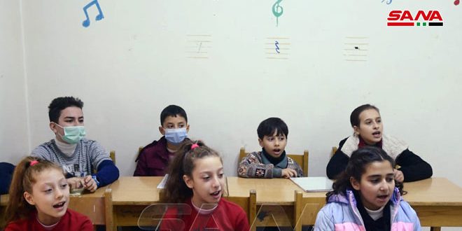 كاميرا “سانا” زارت المعهد واطلعت على أقسامه حيث بينت مدرسة مادة الصولفيج هالة مصري أن تعليم الأطفال يتم وفق سلالم موسيقية مع تعريفهم ببعض القدود والموشحات مشيرة إلى أن شغفهم وحبهم للموسيقا يسهم في استمراريتهم لتلقي المزيد من المعلومات الموسيقية.