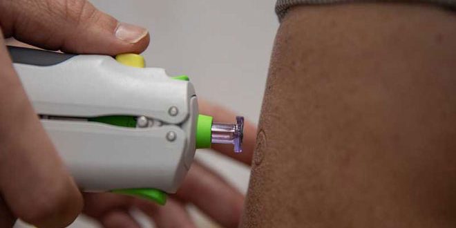 ويتم أخذ جرعة هذا اللقاح من خلال وضع المركب في جهاز صغير ثم يتم إلصاق جزء بلاستيكي منه بجلد الجسم في منطقة الذراع وعندئذ يتم الضغط والدفع حتى يدخل اللقاح عن طريق الجلد.