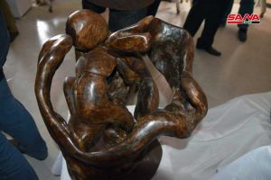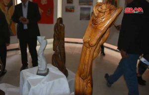 وقدم حسن محمد منحوتة تمثل المرأة مستخدماً مادة الرخام معتمداً على مدرسة الفن التجريدي مؤكداً حرصه على المشاركة الدائمة بالمعارض التي يقيمها فرع اتحاد الفنانين التشكيليين من منطلق المكانة والأهمية لدور الفن والفنان وما لهما من أثر في تصوير وترجمة قضايا المجتمع.